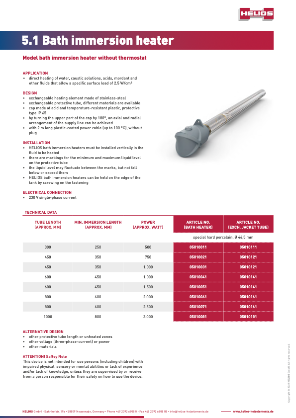 Bath immersion heaters are particularly suitable for direct heating of liquids in electroplating baths.