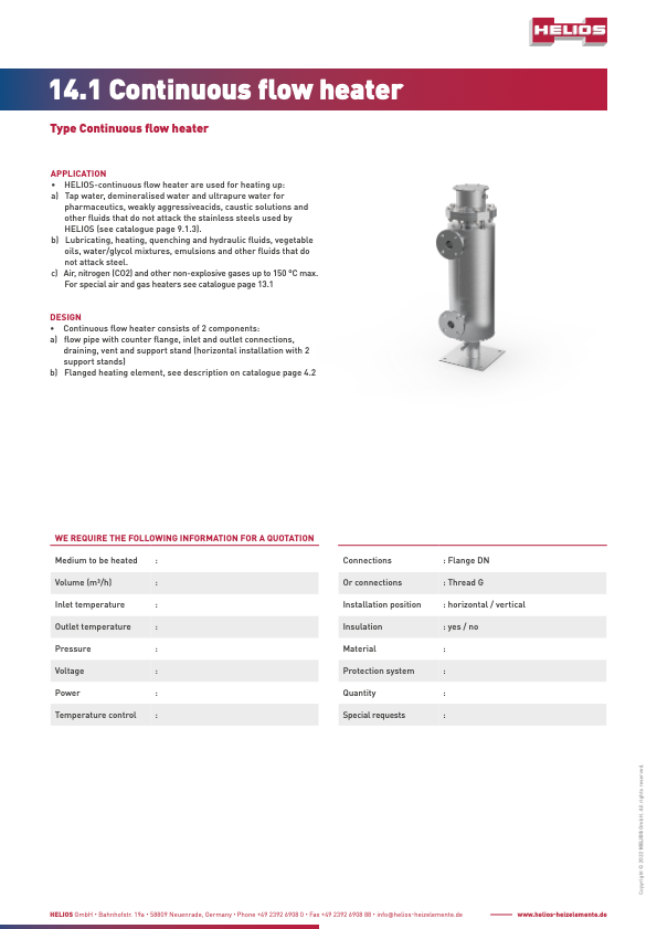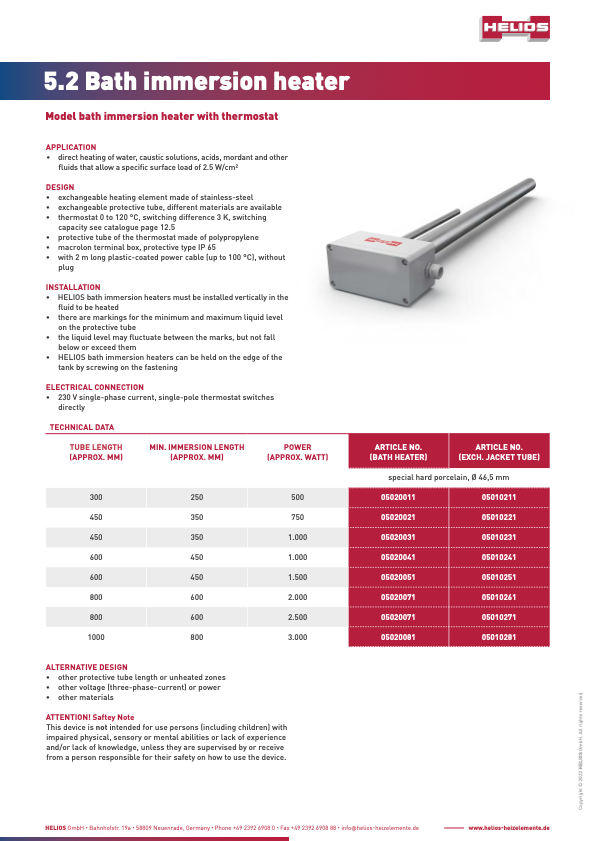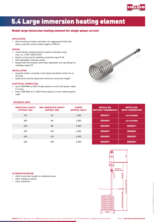Large immersion heaters are used to heat up water or other non-aggressive liquids.