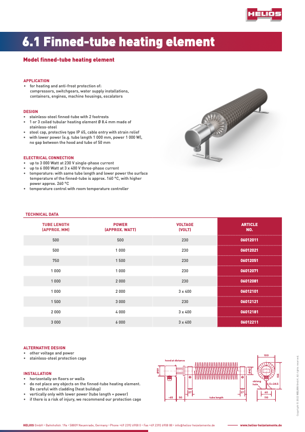 Space heaters are suitable for heating and as frost protection for: Compressors, motors, noise protection enclosures, escalators, control stations.